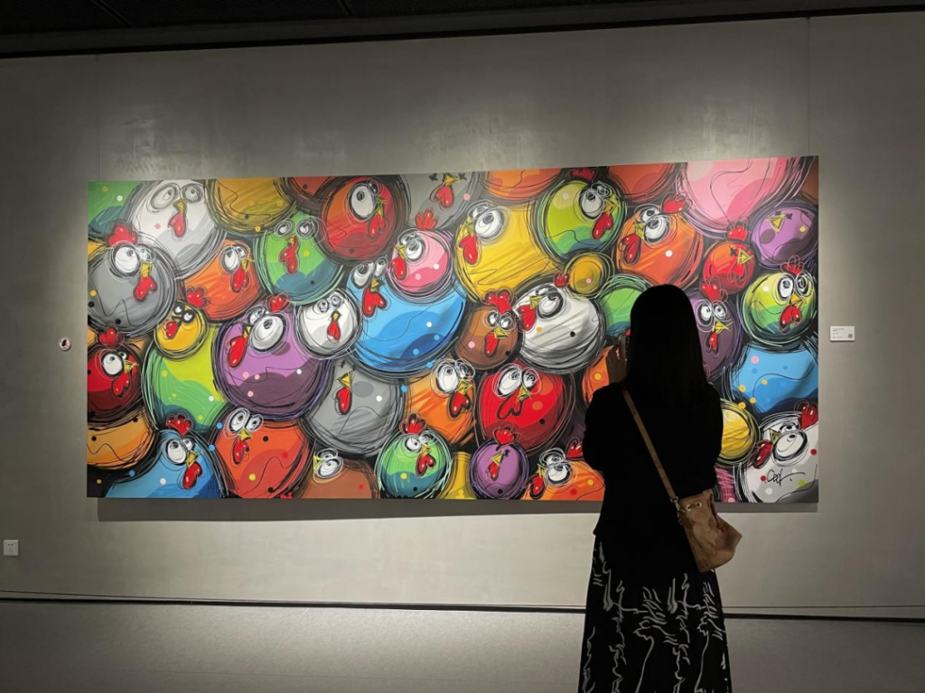 臨展區(qū)展示了著名法國涂鴉藝術(shù)家Ceet Fouad的Los Chicanos 小雞家族系列作品,Ceet Fouad因疫情無法回國,卻受深圳的感知引力作用,懷著對華強北的熱愛,為愛創(chuàng)作了此系列,描繪了被藝術(shù)環(huán)繞下的另一個華強北。