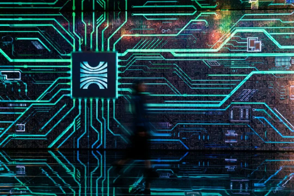 一進入博物館的印象大廳,由線路板與電子芯片構(gòu)成的裝置光影變幻、引人注目,賽博朋克既視感撲面而來。